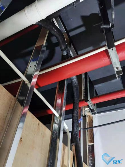 本項目共一層,采用4臺一拖一掛機,還有一臺新風機,因現場的特殊位置原因,和業主方溝通,用壁掛機大程度節約了成本,同時壁掛機使用遙控器更方便操作。因為是娛樂場所,人員流量比較大,有一臺新風機的加持是不可少的,加快空氣的循環,新風機也是吊裝在了走廊,大程度減少了噪音,讓來玩耍的顧客有更好的體驗。