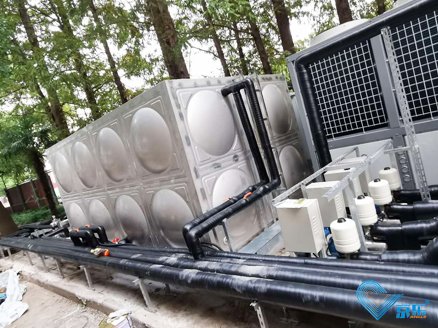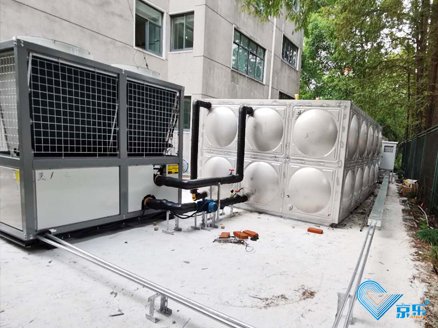 在滿足以上條件的情況下,為給師生提供舒適便捷的生活熱水,滿足2棟師生宿舍樓每天的熱水供應量,該工程配備4臺格力SXD100BCJW/A+KFRS-2.6J/NbA3,60噸保溫儲水箱,可以全天候保證熱水供應,使用至今,效果顯著,節能效果明顯。
