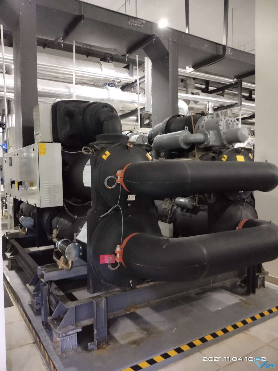 2號熱泵機組,從機組,B回來一處角閥底座泄漏氟。