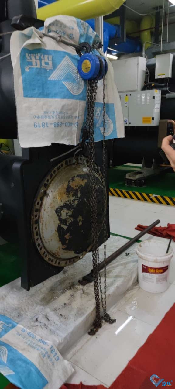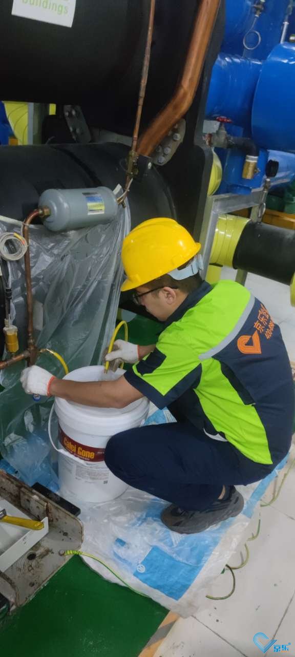 c.3#地源熱泵機組 更換 機油 油過濾器 干燥過濾器 化學清洗 物理通炮清洗完成