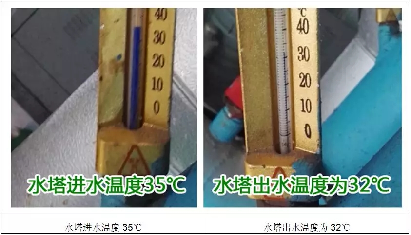 清洗前水塔的進水溫度即為中央空調冷凝器的出水溫度,水塔的出水溫度即為中央空調冷凝器的進水溫度,其進出水溫差為3℃(35℃-32℃)