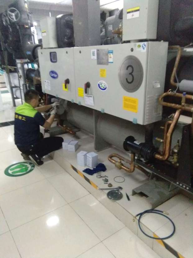 工程概況:項(xiàng)目位于北京市,出版社建筑面積在8000平方米,機(jī)房共有2臺(tái)克萊門特水源熱泵機(jī)組、風(fēng)機(jī)盤管215臺(tái)。2014年至今都有我方做空調(diào)服務(wù),主要對(duì)空調(diào)主機(jī)、末端風(fēng)機(jī)盤管做整體清洗檢修及年度保養(yǎng)、井體的清洗及井泵的維修更換工作。為了保證客戶設(shè)備的正常運(yùn)行我公司為客戶提供24小時(shí)保修服務(wù),每月定期對(duì)設(shè)備進(jìn)行巡檢,及時(shí)預(yù)防和排除潛在隱患。同時(shí)定期為客戶機(jī)組維護(hù)人員做設(shè)備運(yùn)行指導(dǎo)和建議,避免了因使用不當(dāng)造成設(shè)備損壞。通過我公司專業(yè)、耐心、負(fù)責(zé)的服務(wù)贏得了客戶的信賴與好評(píng),并將兩家分公司亦莊知識(shí)產(chǎn)權(quán)、超凡知識(shí)產(chǎn)權(quán)的中央空調(diào)項(xiàng)目也交由我方完成。