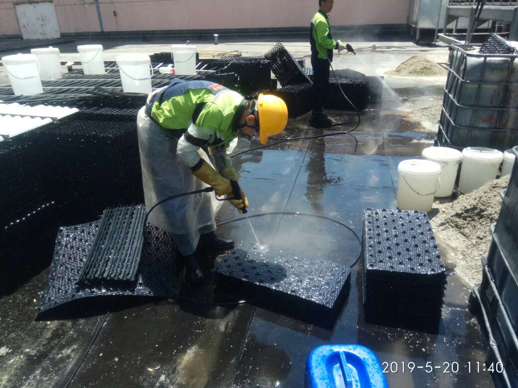 2、在冷卻塔邊人工搭建一清洗槽,將除垢劑溶于清洗槽內;