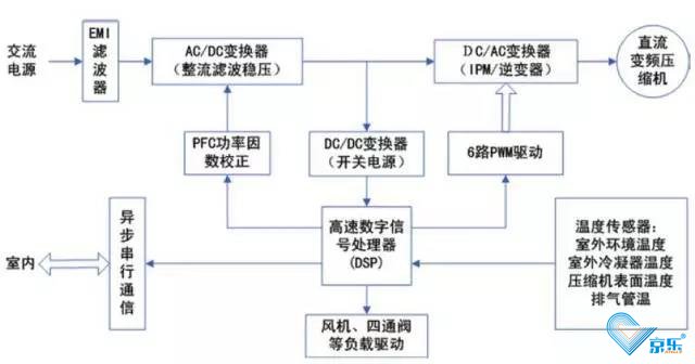 另外,變頻多聯機的控制原理,直流變頻多聯機與數碼多聯機不同,直流變頻多聯機是有濾波器。整流濾波穩壓。PFC電路。逆變器(IPM變頻模塊)。與反饋電路組成,控制邏輯和控制流程如下;
