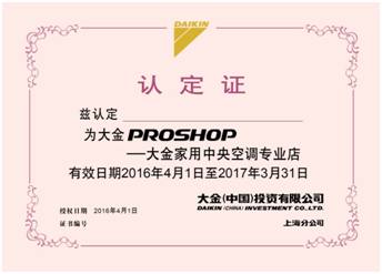 大金對家用中央空調的服務經銷商有嚴格的認定培訓機制,每年會對全國的家用中央空調經銷商在銷售、設計、安裝、服務進行全面的考核,只有通過考核的經銷商才能獲得認定資質,我們稱之為“PROSHOP”家用中央空調銷售專業店。因此選擇大金PROSHOP,無論在任何方面,您的服務都會更有保障