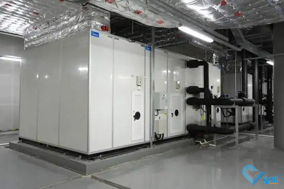 再次,我們中央空調保養廠家再去看看空調機組,一般商場里面的末端設備就是空調機組。也可能有少量的風機盤管,酒店就是以風機盤管居多。這里外部的三臺空調機組,也叫風柜,它的作用就是處理空氣增主機蒸發器流出來的冷凍水流進空調機組。經空調機組的蒸發器后,吸收空氣的溫度,再回到主機去降溫,而被吸收溫度的空氣就通過空調機組的風機吹出來。再由風管輸送到商場的各個區域,從出風口吹出來。