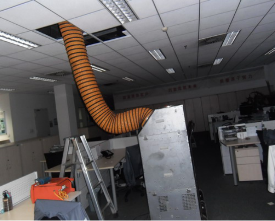 中央空調管道清洗方法4、將要清洗施工段的風道上的送回風口拆下,再用塑料封堵膜堵上。