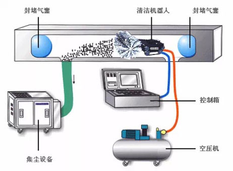四、使用通風管監視監控系統檢查管道內污染程度、管道結構內特點,選擇合適的清洗設備。