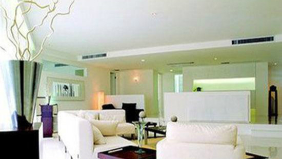 3、裝飾 由于安裝家用中央空調(diào)和裝修工作同步進行,所以安裝家用中央空調(diào)時必須確定裝修方案,在保證空調(diào)效果的基礎(chǔ)上,把空調(diào)室內(nèi)機的安裝位置和風管走向確定下來。一般室內(nèi)機安裝在過道外的局部吊頂內(nèi),風管可采用局部吊頂?shù)姆椒[蔽起來,然后把外露的送風口、回風口的大小和位置定下來。