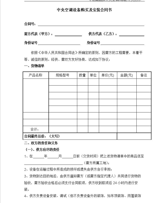 6、乙方以優(yōu)惠的價格為甲方提供各種空調配件。
