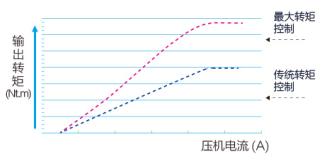有效利用直流變頻壓縮機轉子磁阻轉矩,保證最小電流輸出大扭矩,減少電子繞組損耗,能效更高。