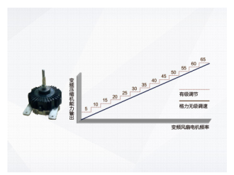 采用高反電動勢的直流變頻電機,實現在5HZ~65HZ范圍內無極調速,相對普通直流變頻電機,運行電流更小,電機輸入功率更低,效率更高。