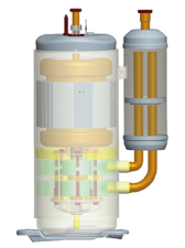 壓縮機為直流變頻壓縮機,電機部分采用高效永磁同步電動機,效率更高