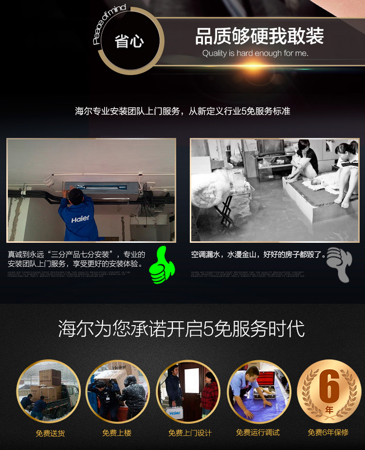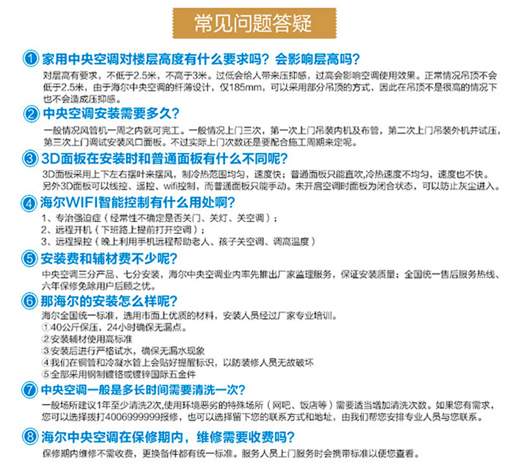 以上就是京樂企服為大家整理《家用中央空調 海爾(Haier)8匹 一拖六6年包修》的全部內容了,如果還有疑問請咨詢24小時在線客服小姐姐。