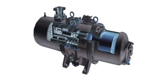 將壓縮機和電機封閉在同一殼體內(nèi),采用電機主軸與螺桿陽轉(zhuǎn)子軸直連,無需聯(lián)軸器,從而減少運動部件,縮小體積,讓傳動保持高效低噪運行。獨特的無軸封設計,確保冷媒無泄漏隱患,減少能耗損失。