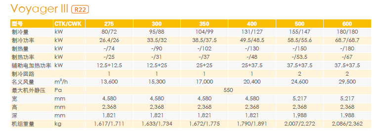 屋頂式風冷空調(熱泵)機組 VoyagerIII系列技術參數